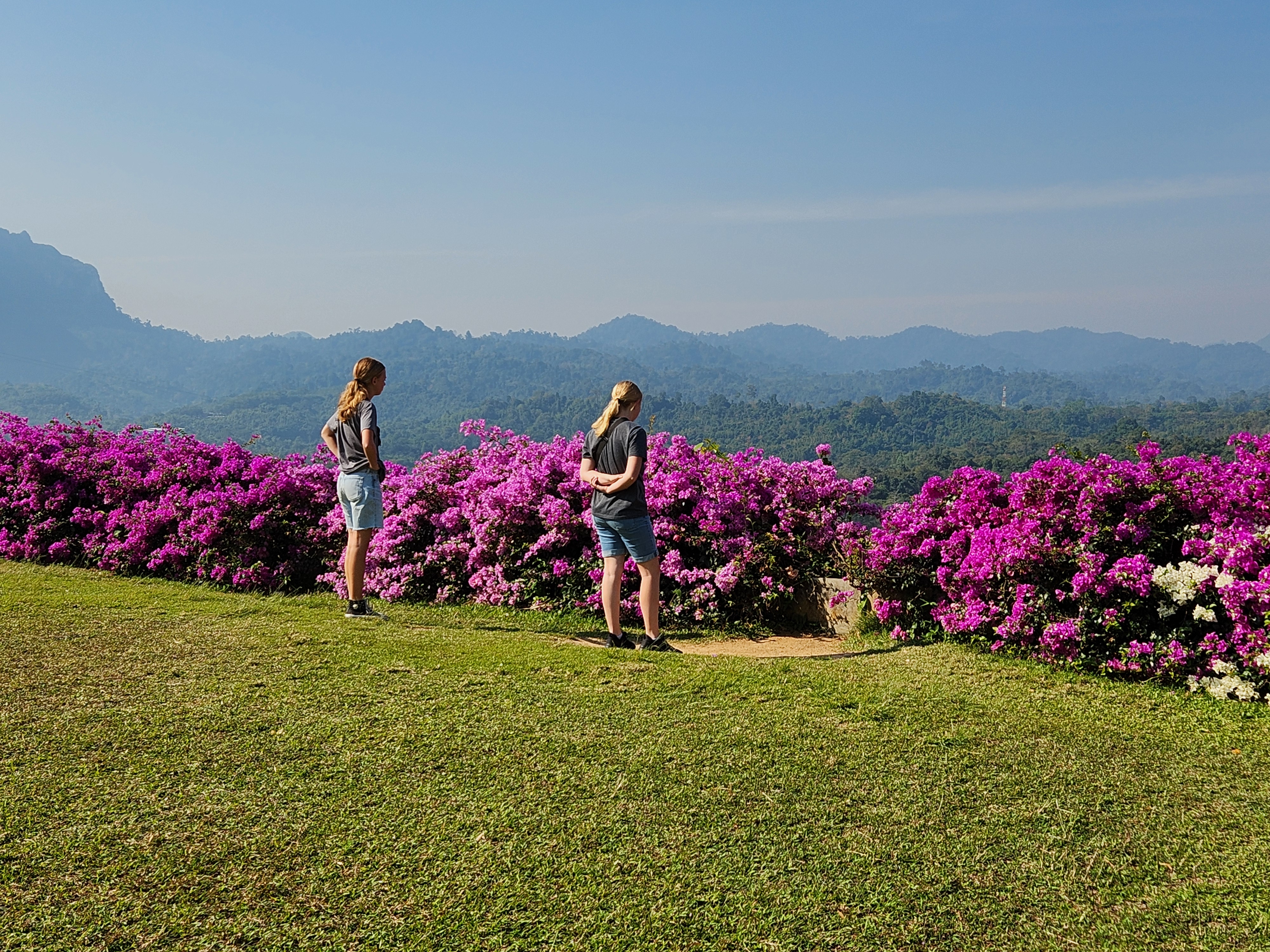 When the sun was fully up the mist burned off and the clouds evaporated, leaving us with a gorgeous sunny day. We went back to the bungalows for breakfast and to check out. Thai breakfasts are just not that appetizing. Not sure how you ruin fried eggs, but they are not good. They look like rubber and are mostly raw. And the sausages are bland hot dogs. Gross. We all survive on toast with jelly and fresh fruit.