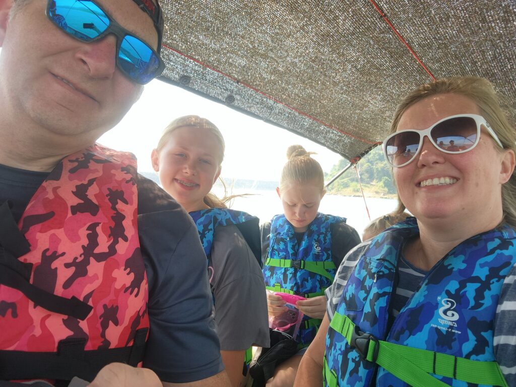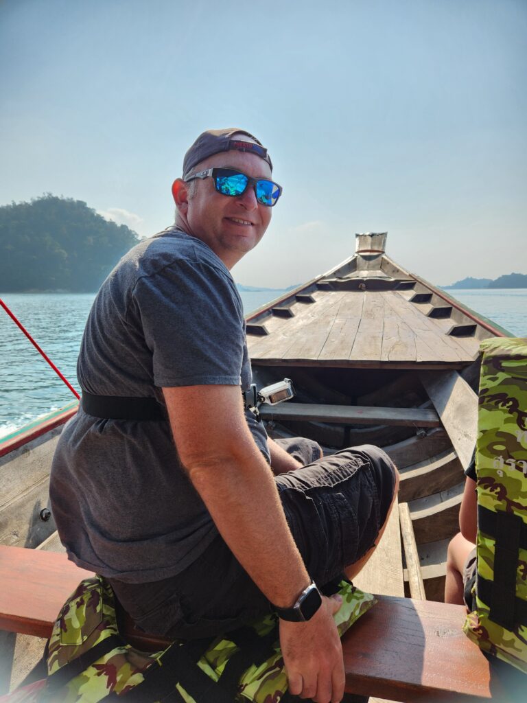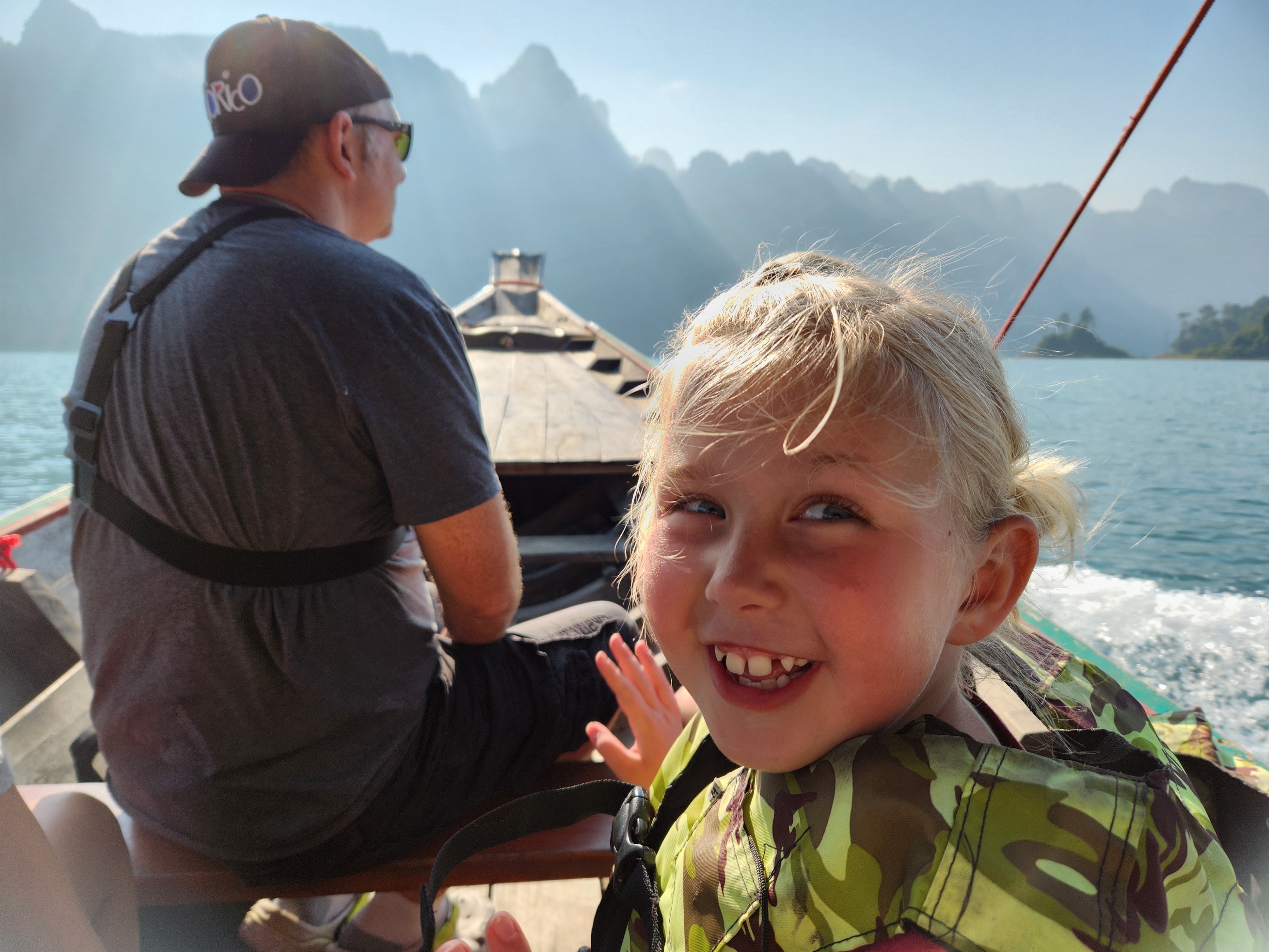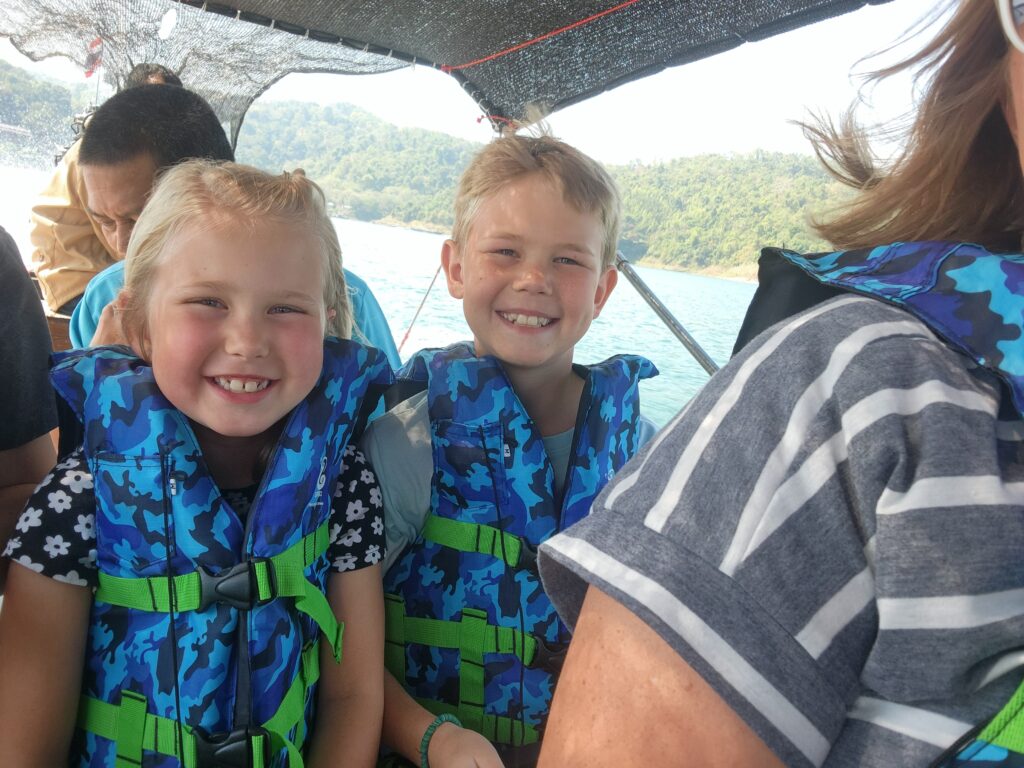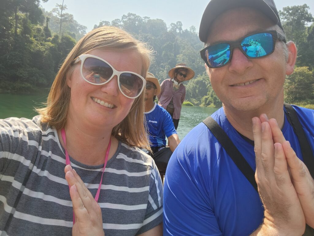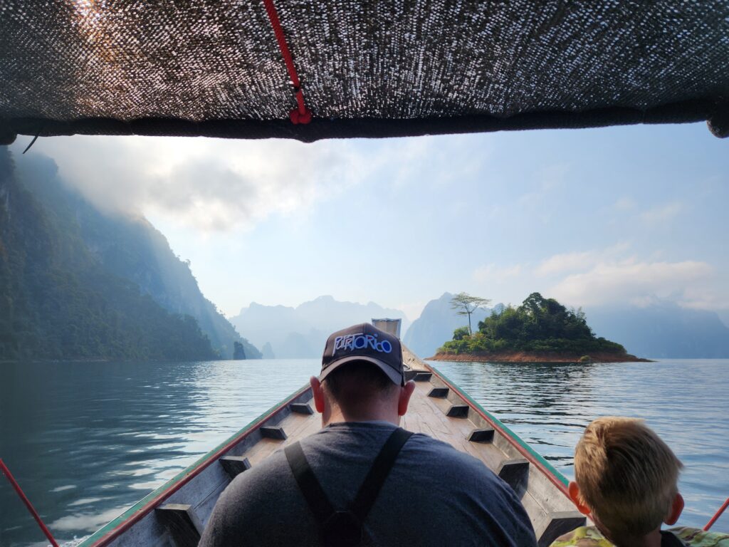 We stopped at the Ratchaprapha Dam overlook on the way to meet our tour guide at the marina. He ended up messaging us while we were there with parking directions and wondering when we would arrive… then we figured out we were both at the overlook and met there instead. Iris took an instant liking to Spud and Littlest Girl and gave them VIP treatment the whole tour.