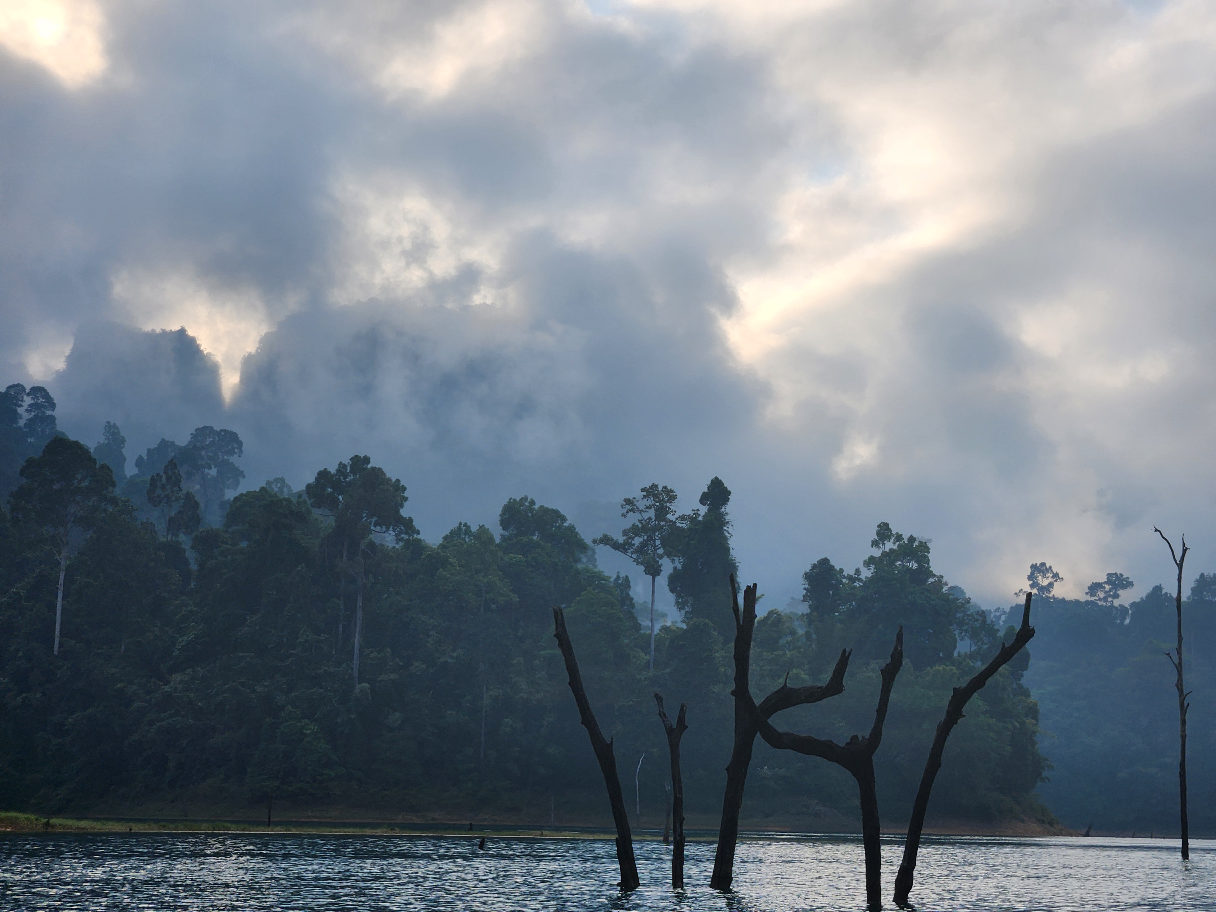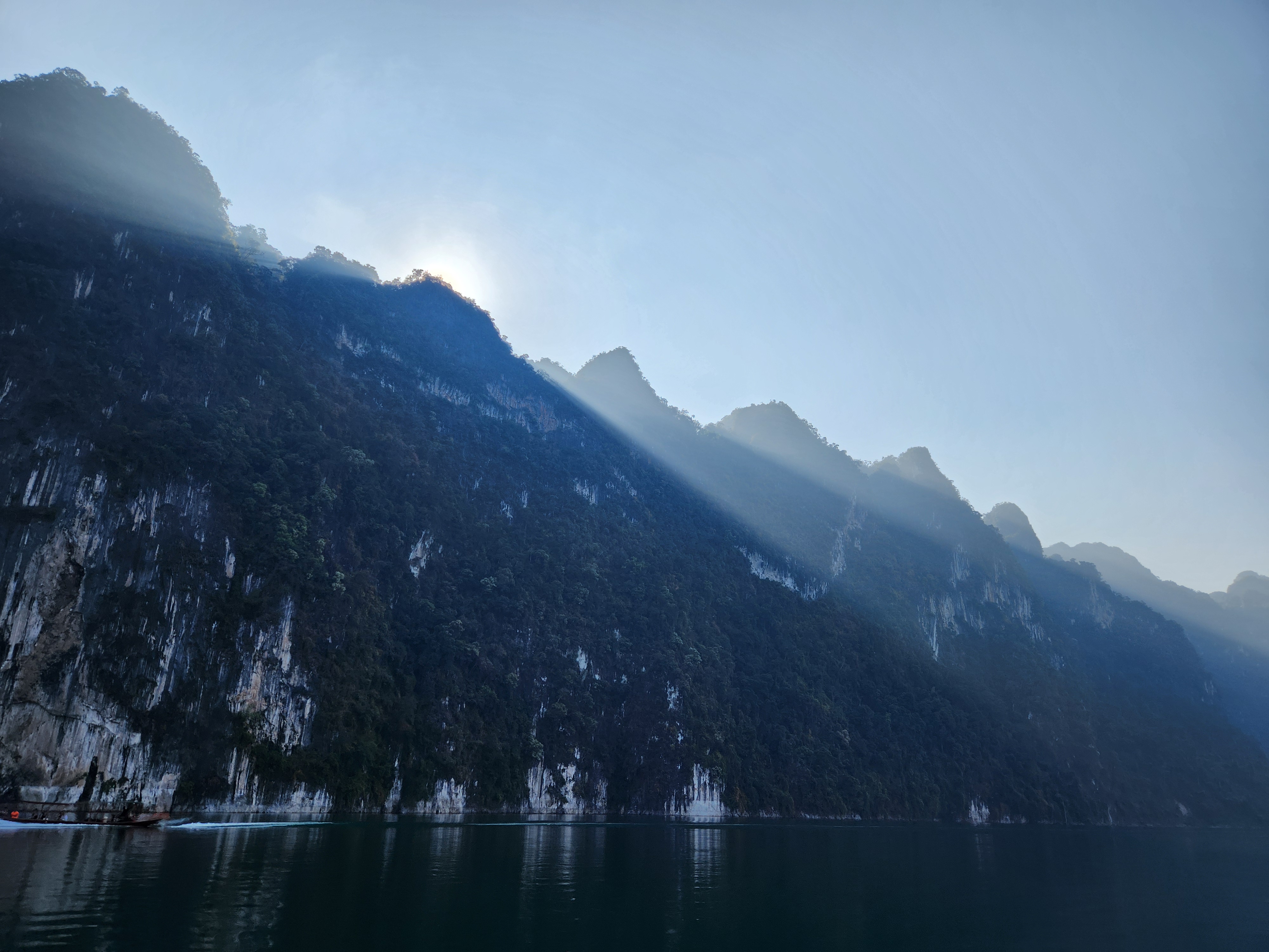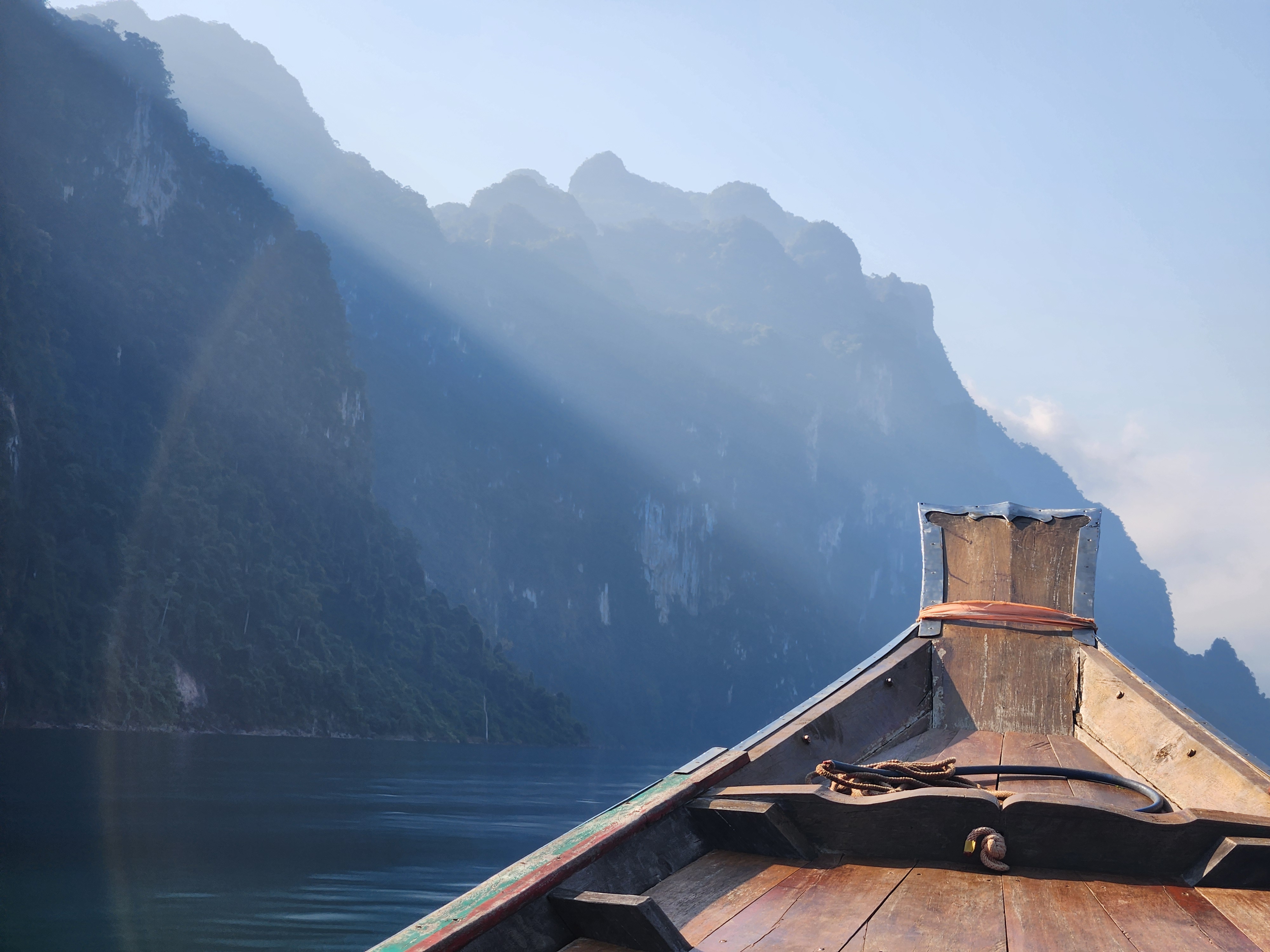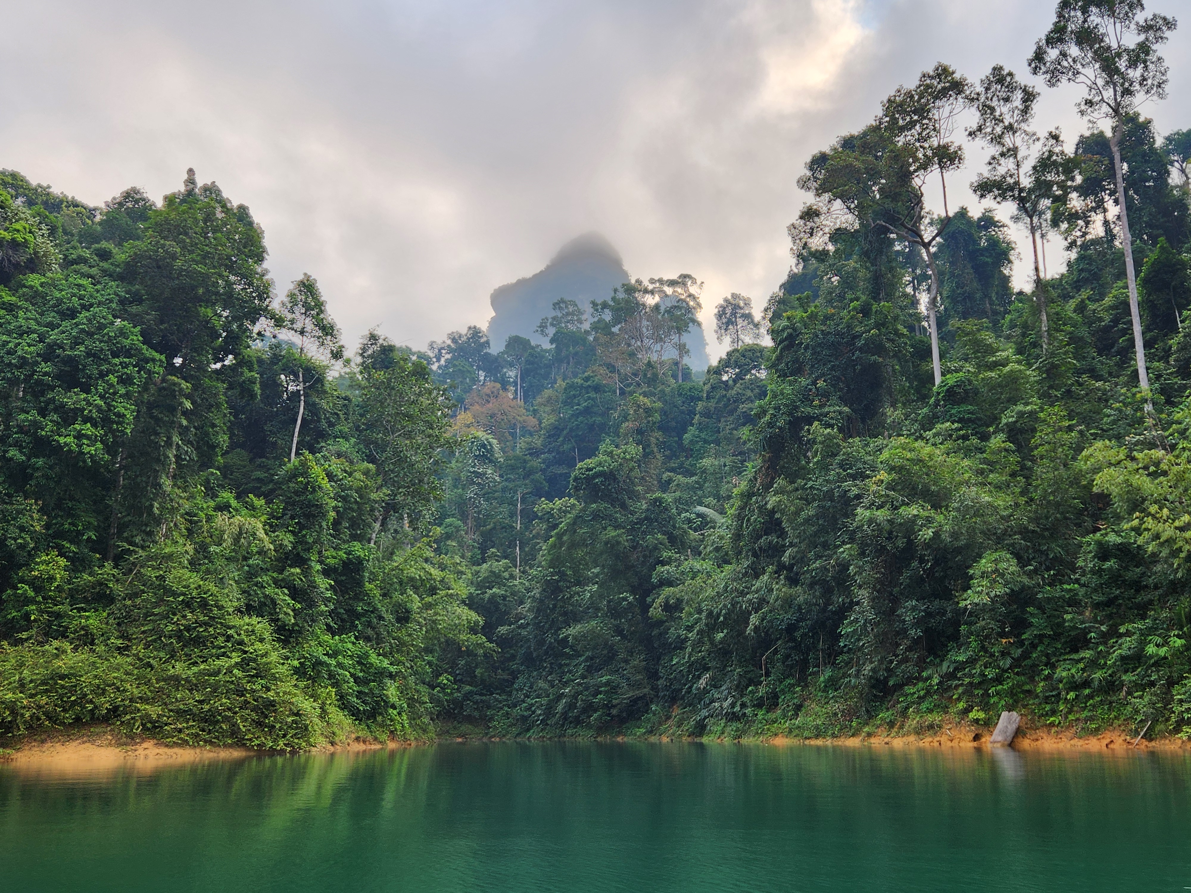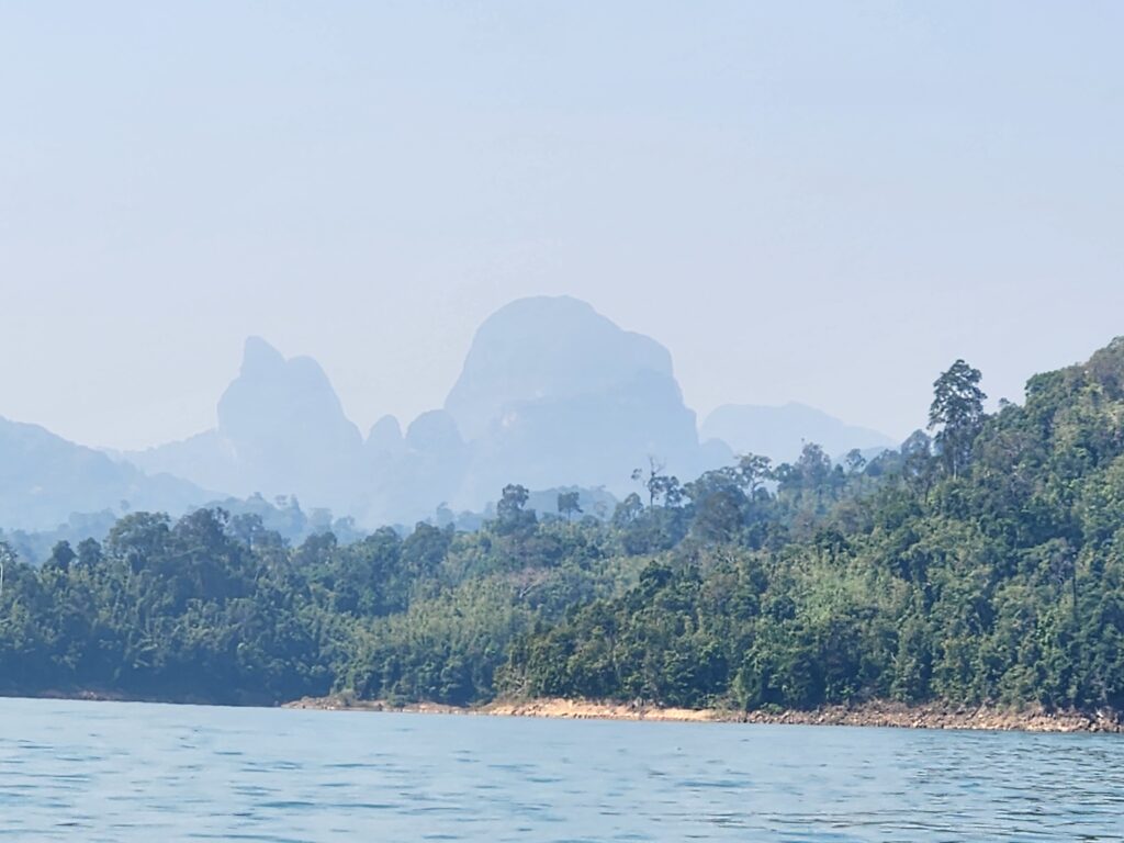 We got back in the long-tail boat and went slowly and quietly in and out of little inlets of the lake with jungle and mountains all around. We’d motor in and then the driver would cut the engine and we’d float silently closer to shore while watching the trees for birds and other wildlife.
