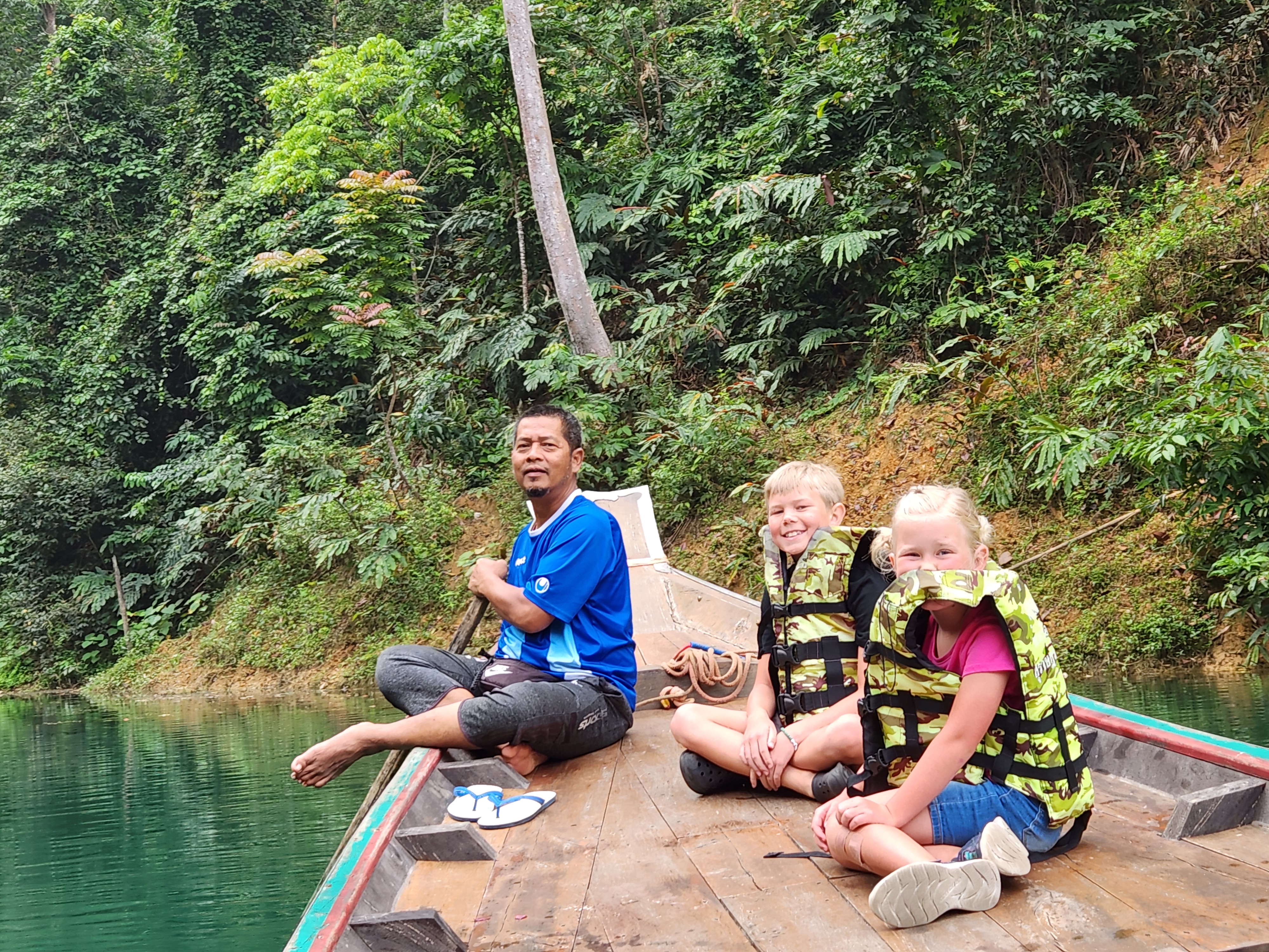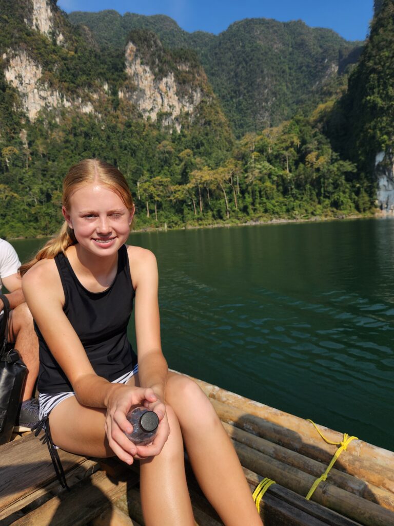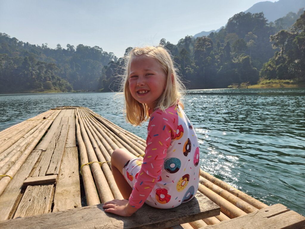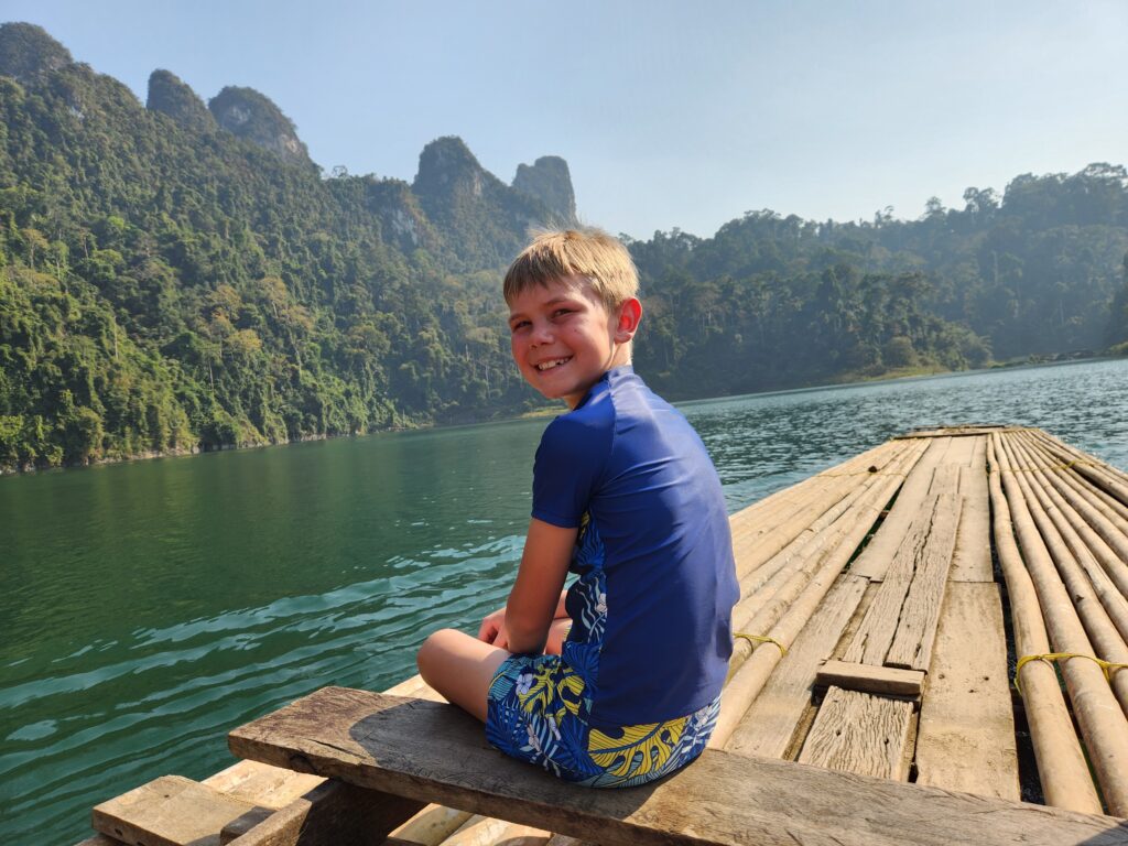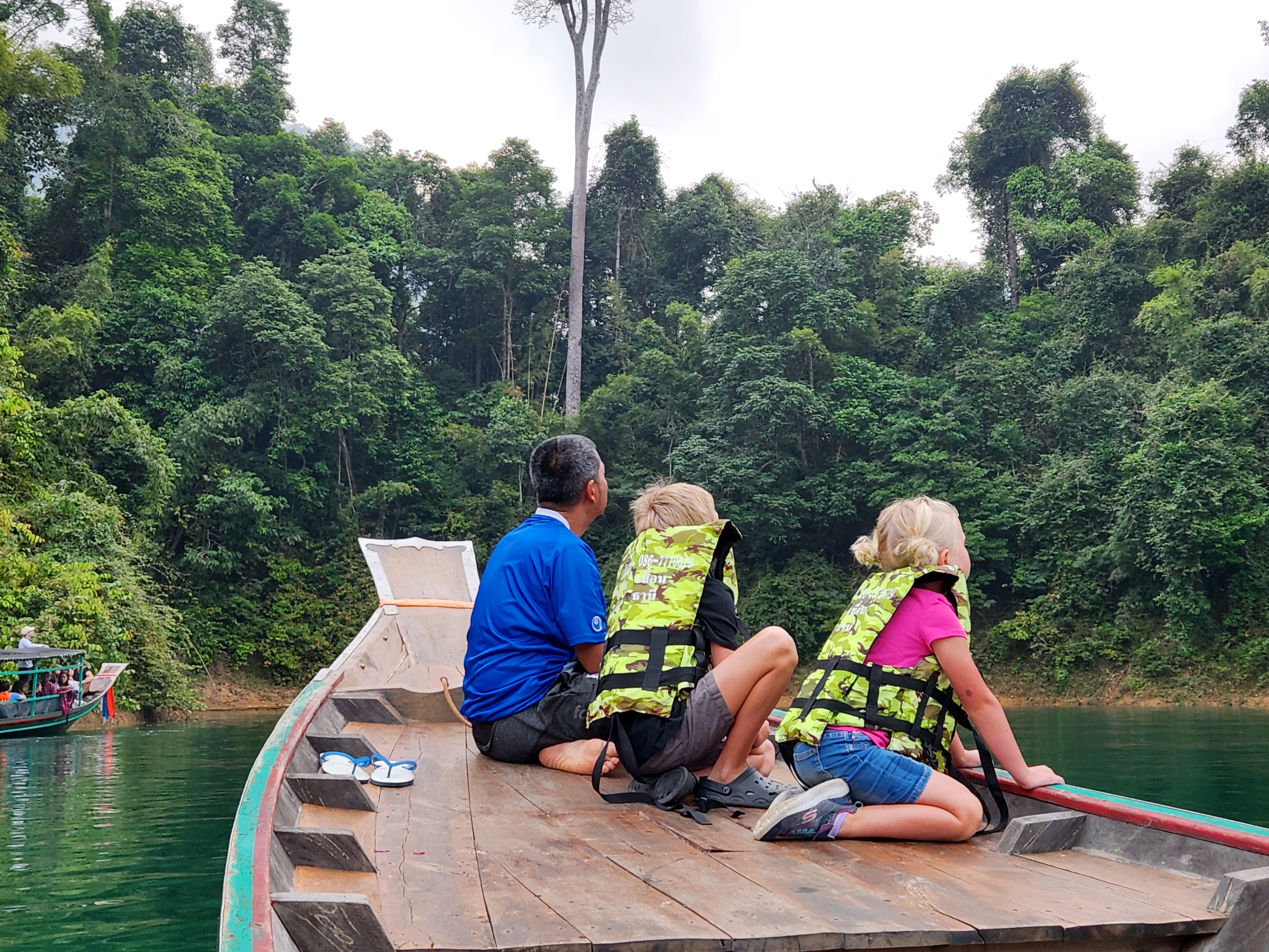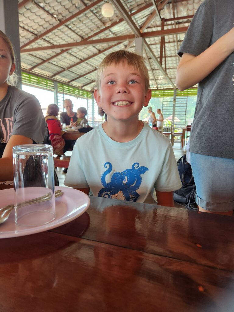 We loved every minute of the morning safari in Khao Sok National Park — totally worth it!! It was so cool to see Iris and the boat driver be excited about the animals we were seeing. One of us would spot something and then they’d navigate as close as possible and make sure everyone got to see. Iris invited Spud and Littlest Girl to sit on the bow with him. If he didn’t know what something was (like the specific species of hornbill), he’d ask the driver in Thai and they’d have a rapid-fire conversation back and forth and then he’d translate for us. They also discussed the best places to try to find elephants and we tried hard, but no luck. It’s just not often that you find guides so excited and involved even though they see this every day. Made it even more special for us.