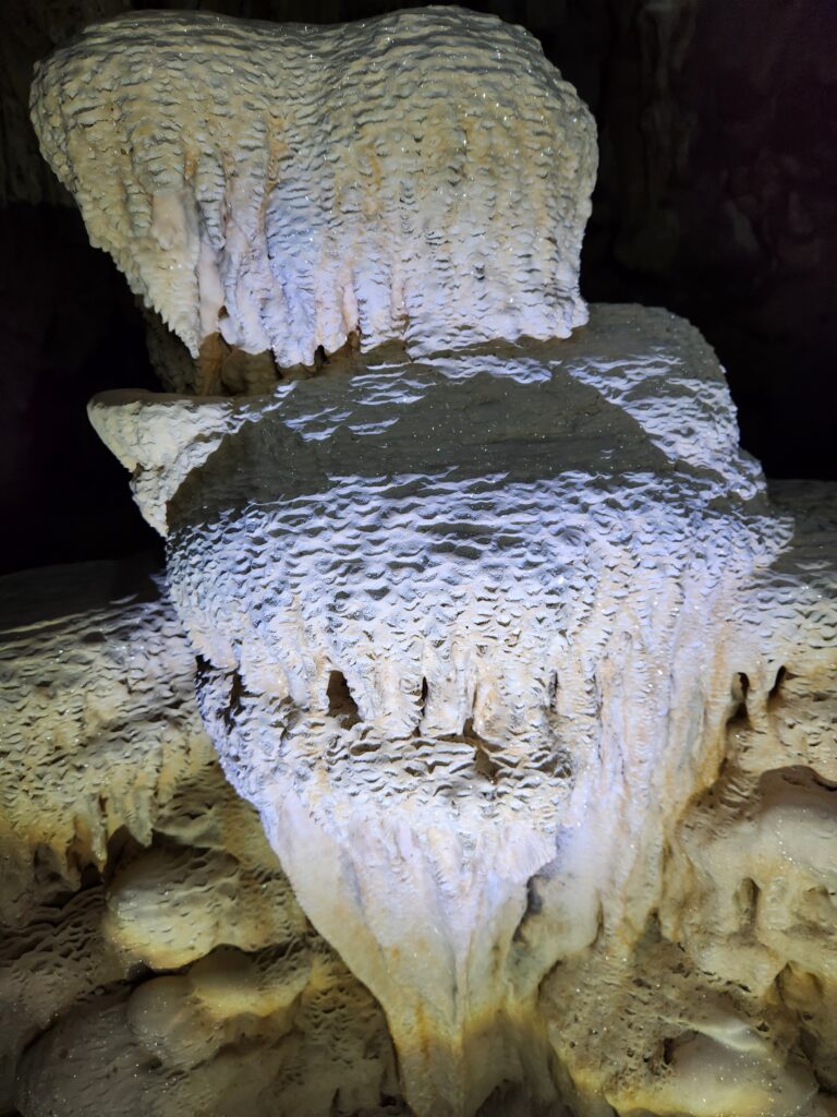 Coral Cave is not lit up, so Iris passed out flashlights and carried an LED bar attached to a big battery. It’s not a huge cave, but it has a lot of formations that look like they belong in a reef. We made a lot of pictures and enjoyed the coolness of the cave. Of course, no cave in Thailand is complete without a shrine in it.