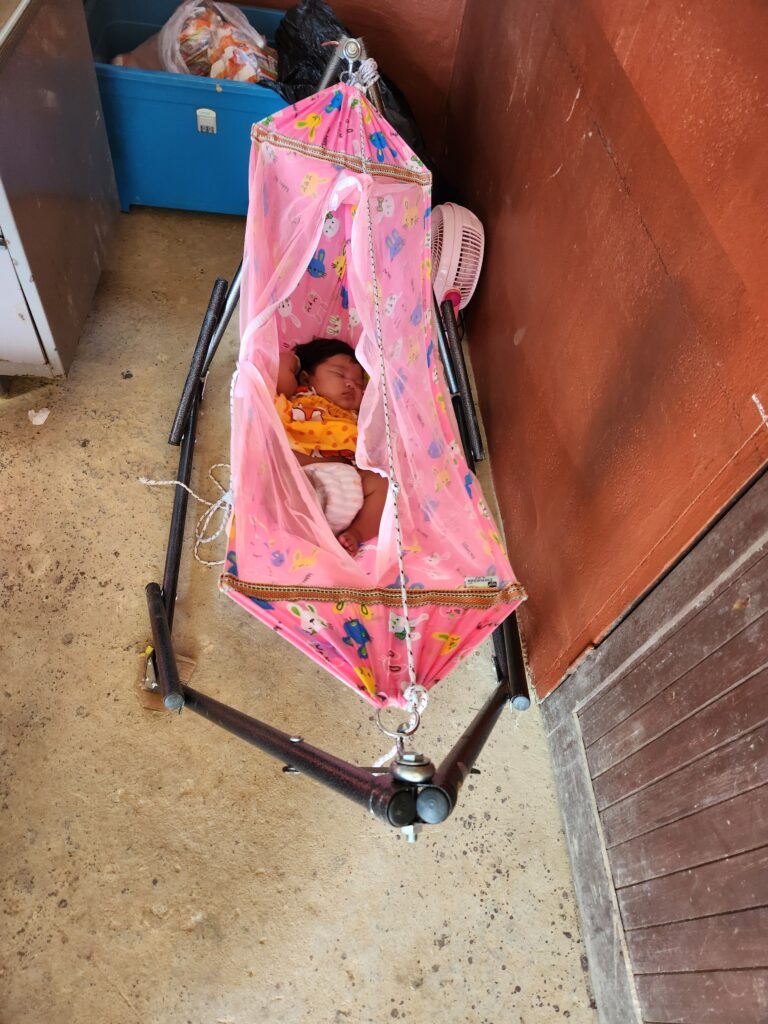 We used the restrooms at the trailhead and I snapped a quick picture of the Thai baby napping in a mini hammock while her mom ran to shut off the hose that was flooding the bathroom. I love that Thai culture allows for babies and young children to be with their moms at work.