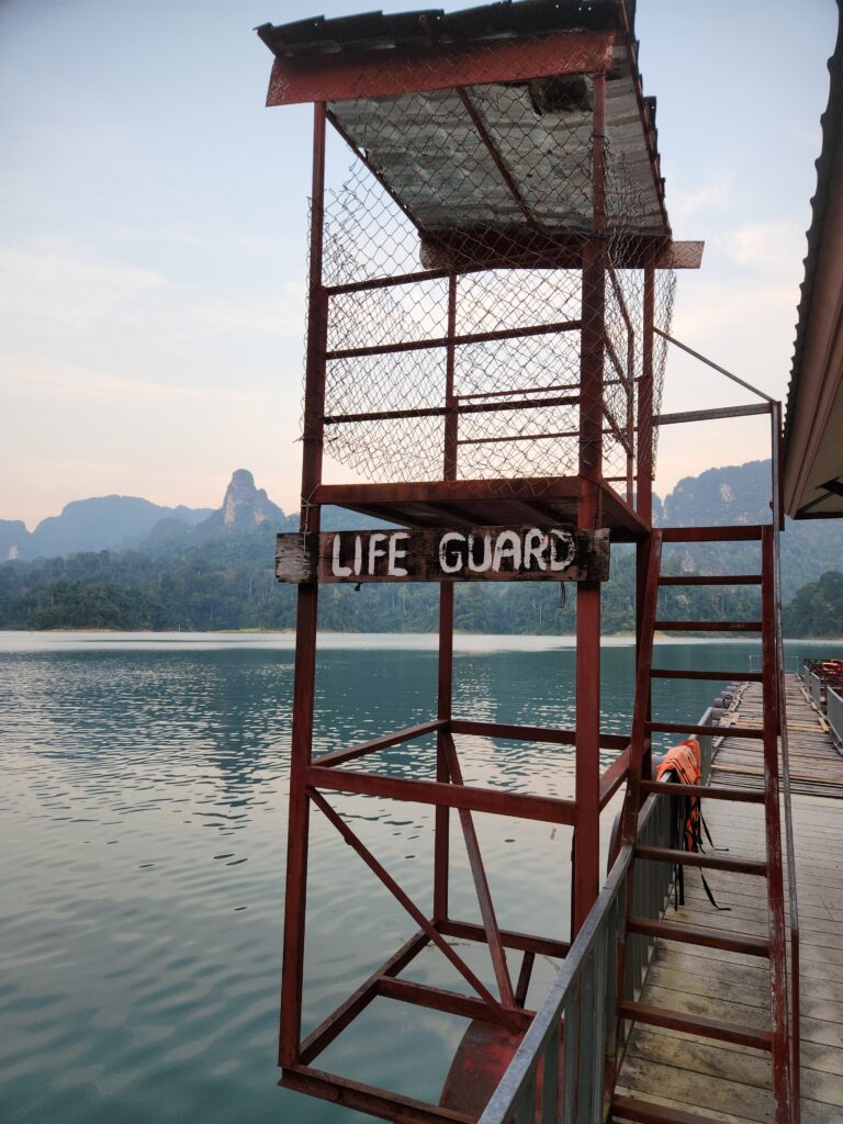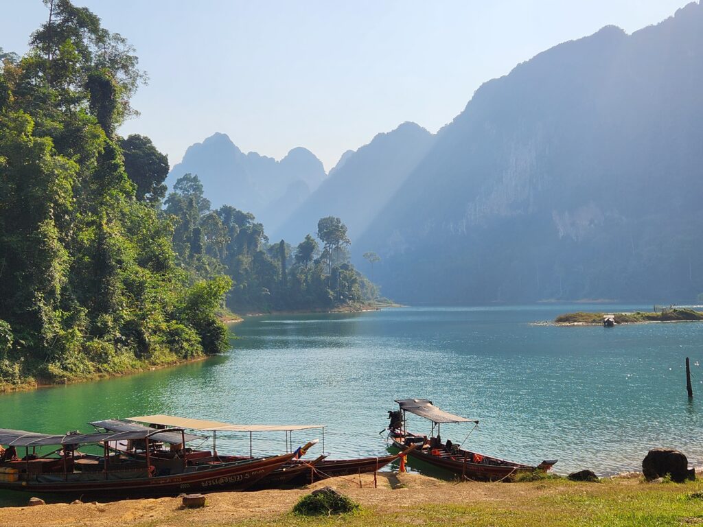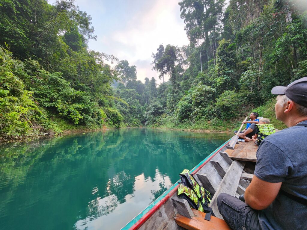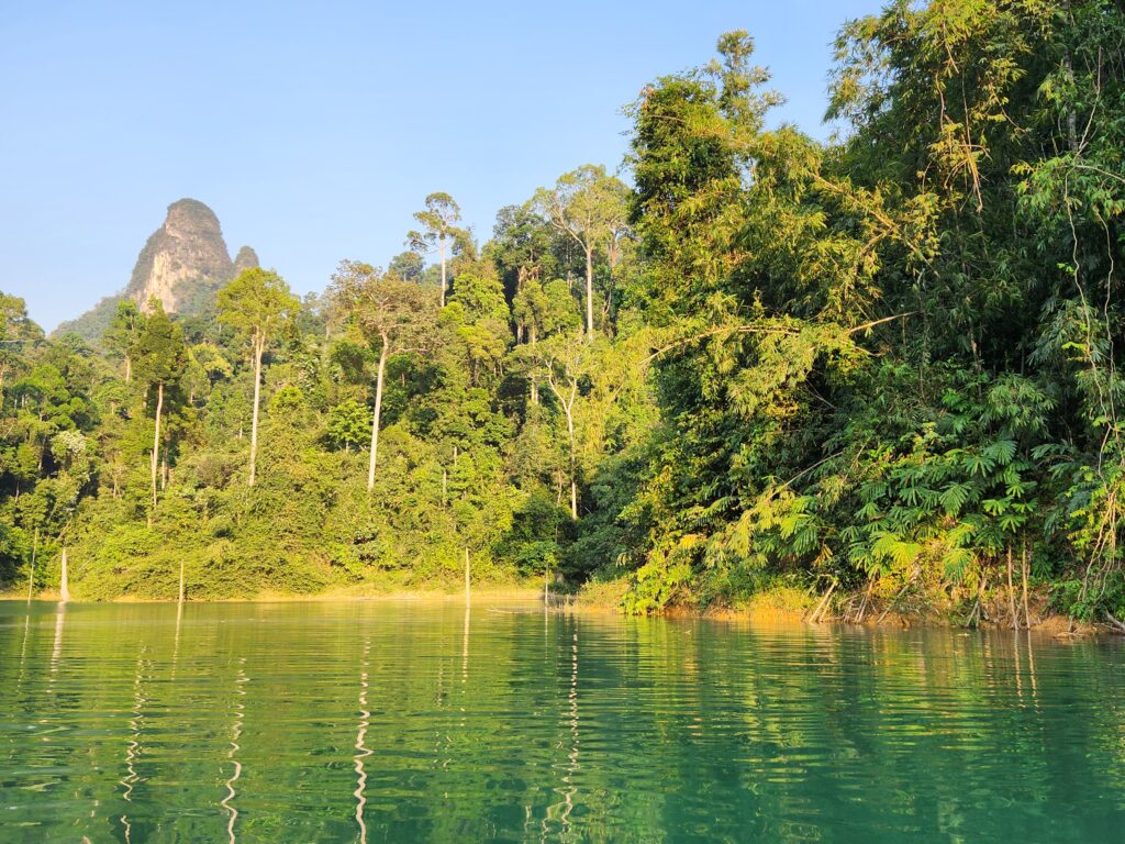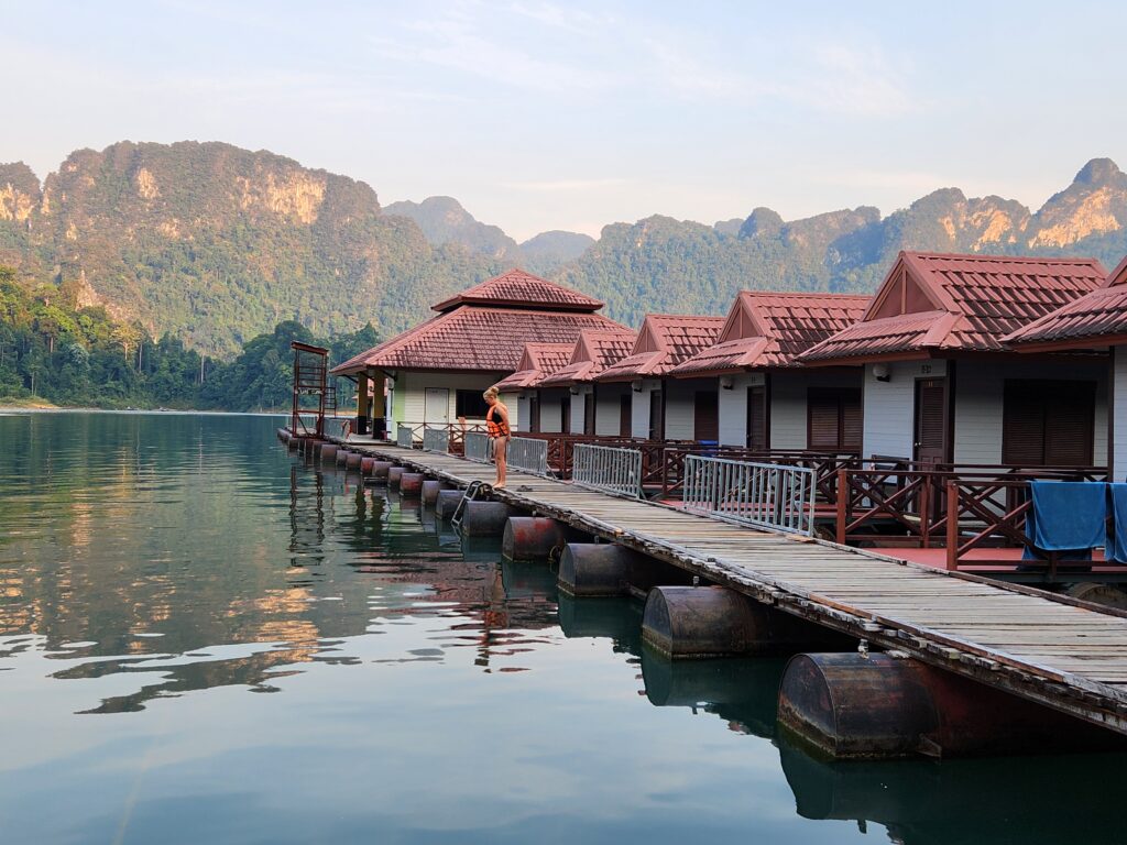 Superman was the one who found out about Khao Sok National Park by watching YouTube videos about the best places to visit in Thailand. Cheow Lan Lake looked absolutely amazing and we figured we couldn’t pass up the once-in-a-lifetime chance to stay in floating bungalows on a lake in the jungle and take evening and morning boat safaris to spot wild animals. We found a tour several months before the trip and booked it for the only days available – unfortunately over a Sunday – but ended up loving it. So, plan in advance if you want to visit!!