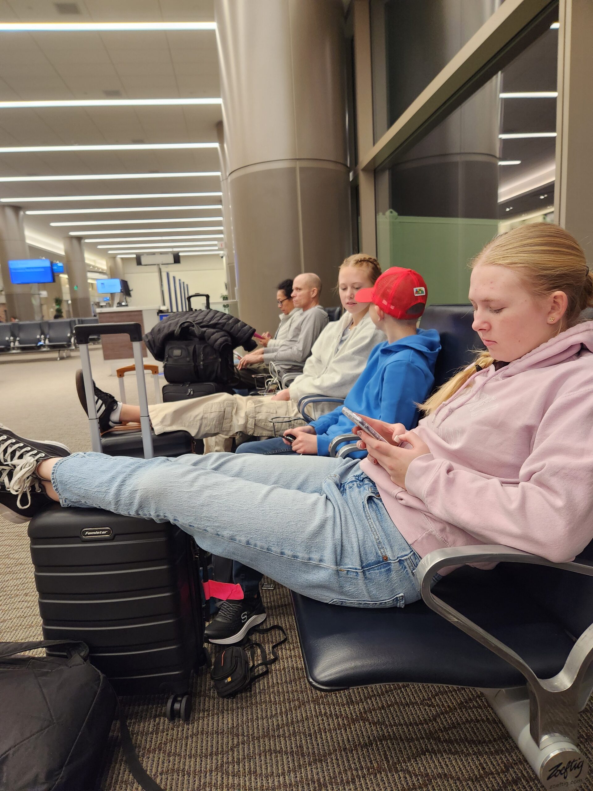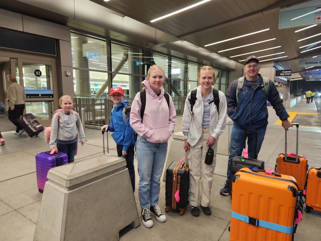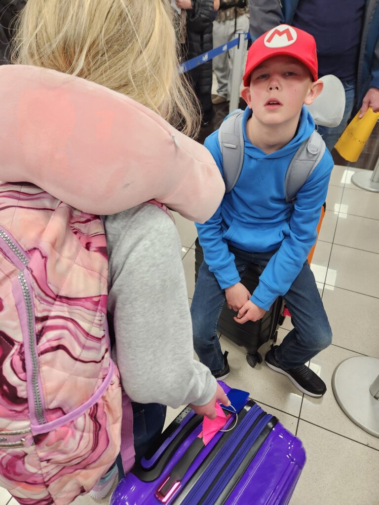 The kids asked how long this flight would be, anticipating a long time after their experience last year going to Thailand… Nope, only 3 1/2 hours! They were disappointed that the plane didn’t have movie screens, but we were able to quickly get devices connected to the free entertainment wifi through the airline, and everyone got to watch a movie to pass the time.