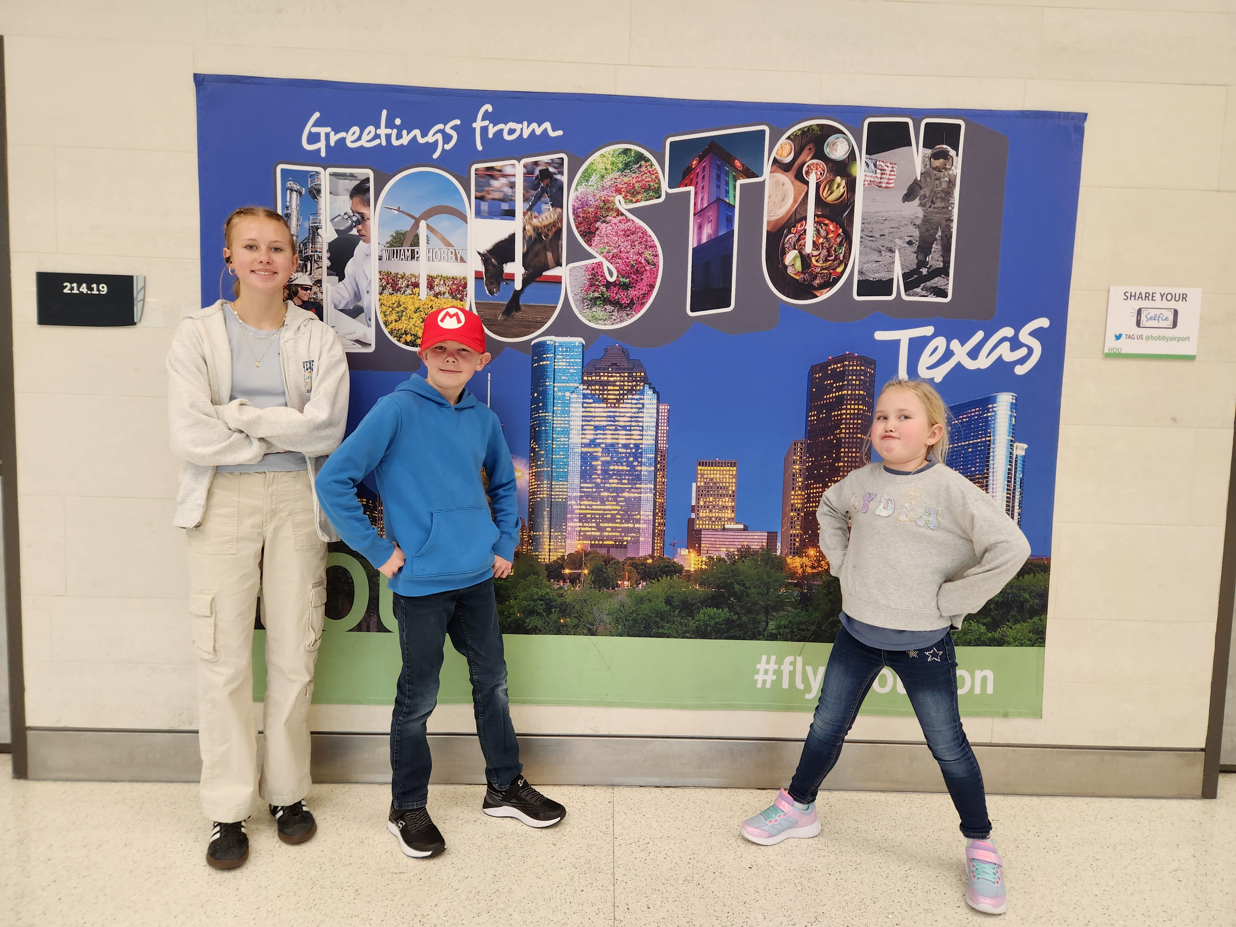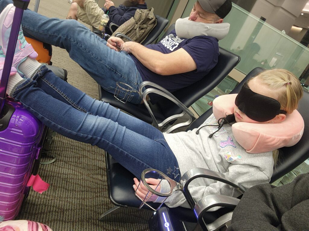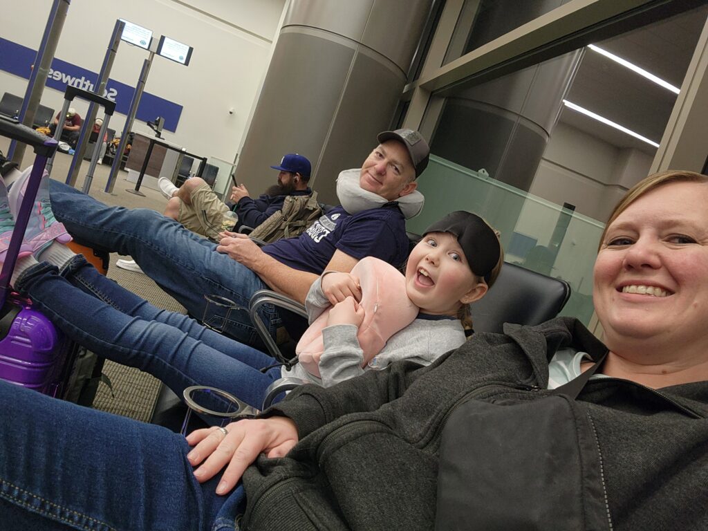 We got up at 3am and arrived at the airport by 4. Check in and security were a breeze, so we had time at the gate to at least close our eyes and rest before boarding our 6am flight to Houston. Some of us even slept on the 2 1/2 hour flight a little. Yay for that.